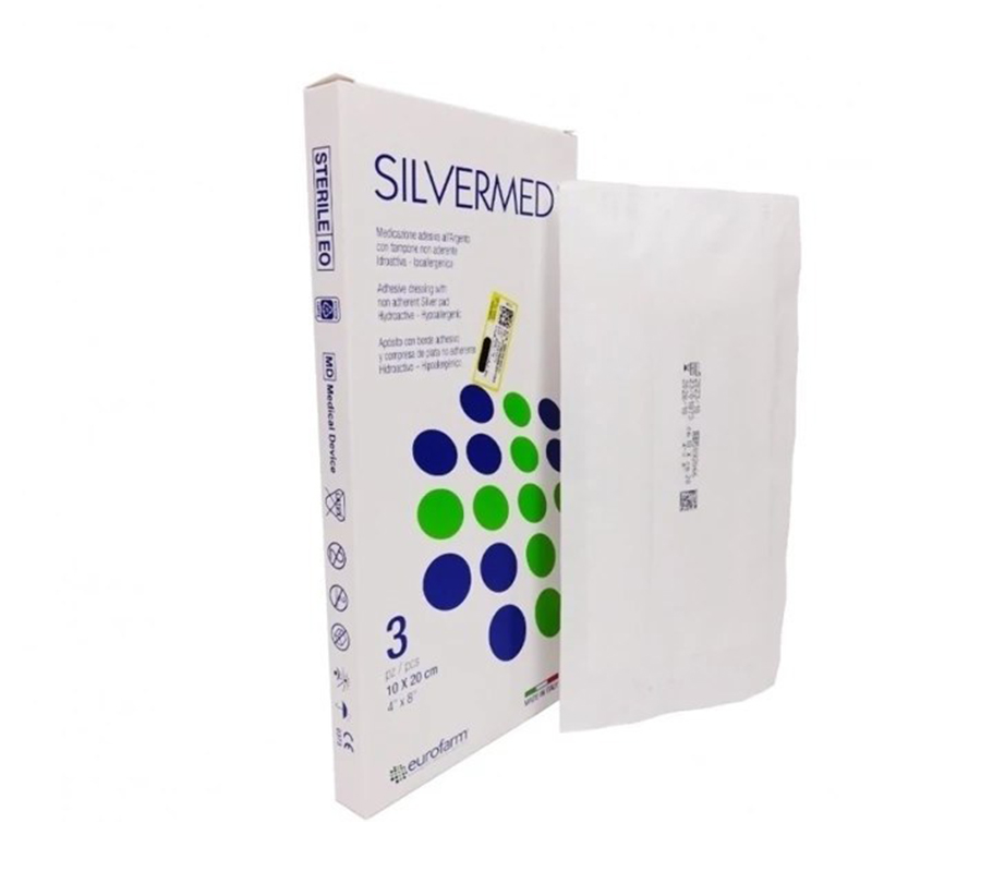 پانسمان سیلورمد یک پانسمان استریل با یک پد جاذب و غیرچسبنده و دارای یون های نقره در مرکز آن می باشد. این پد دارای اثر آنتی میکروبیال است که روند ترمیم زخم را با کمک تکنولوژی نقره موجود در آن در روش نوین ترمیم زخم با فراهم آوردن محیط مرطوب تسریع می کند.